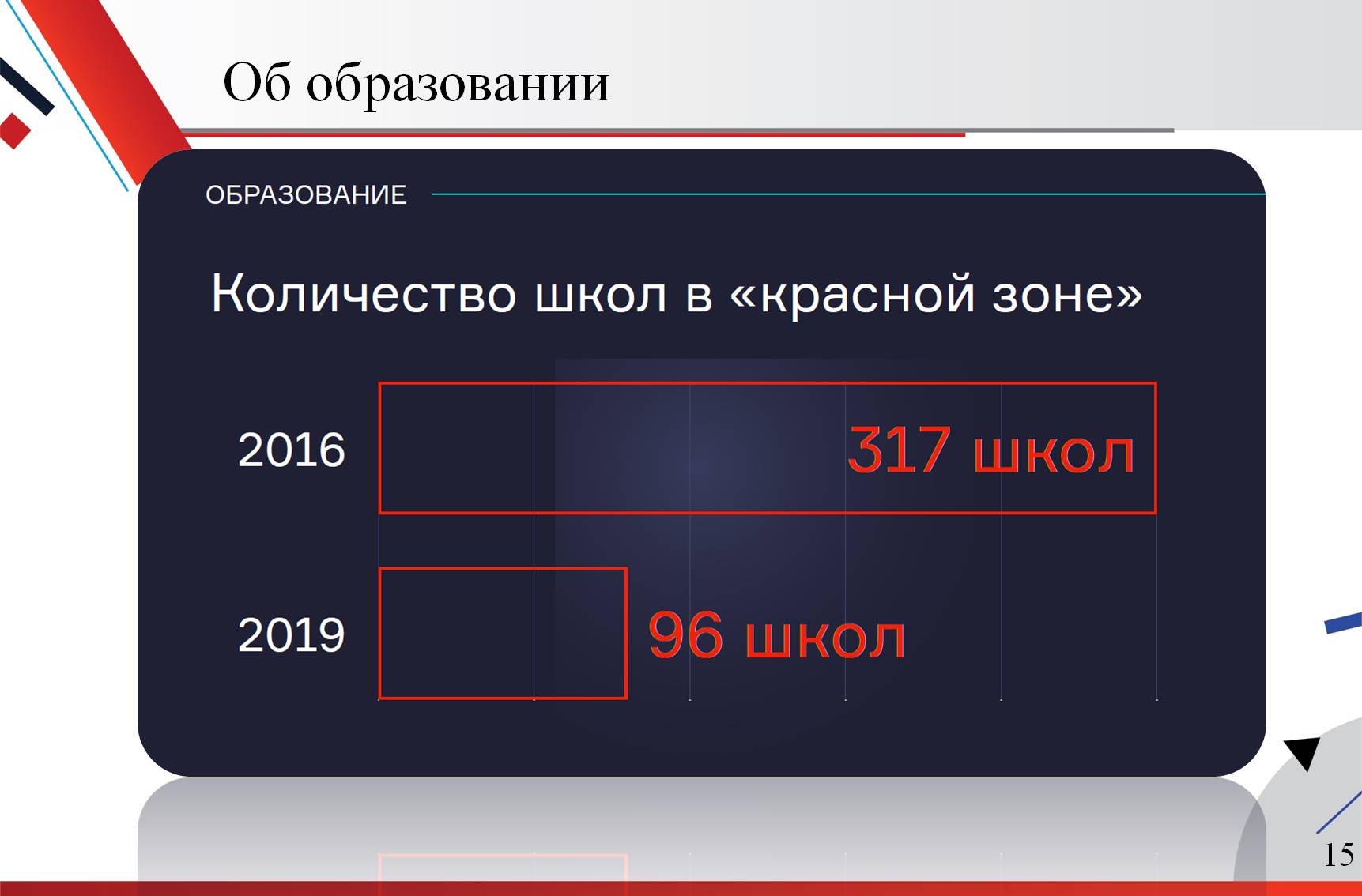 Наша задача– обеспечить качественное образование добавил Андрей Юрьевич Воробьёв. Для этого в Московской области ежегодно формируем рейтинг школ. Если 3 года назад из 1,5 тысяч школ в красной зоне было порядка 317, то сегодня слабыми считаются всего 96.